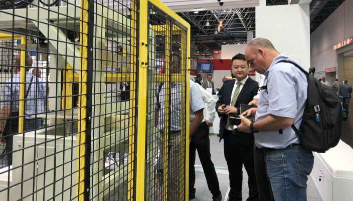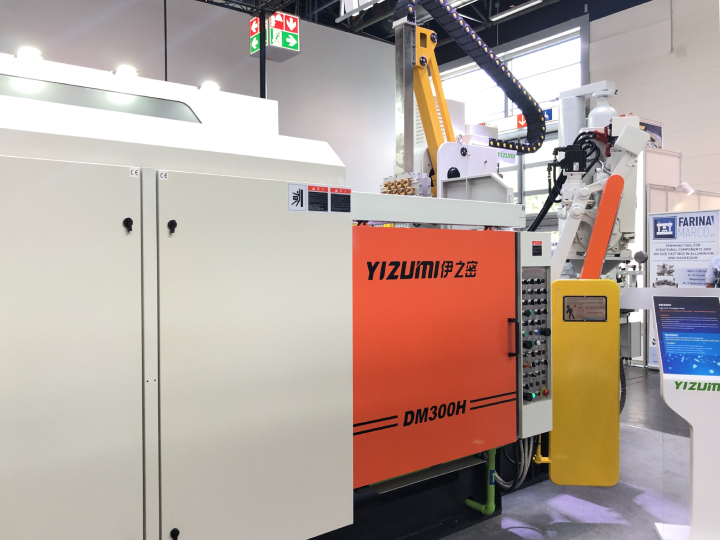 在伊之密展位 (Hall 11/G04),DM300H高端系列冷室压铸岛吸引了众多客商驻足了解。H系列压铸机系列集成了伊之密在压铸装备领域十多年的研发制造经验,秉承北美HPM对产品用料标准的高追求,同时参考CE标准打造的一款与欧美技术全面对标的产品。