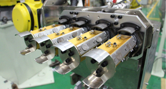 系统采用FANUC/KUKA/ABB等不同品牌的6轴铸造版工业机器人,防护等级高,适用于不同镶嵌件生产。