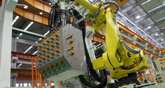 系统采用FANUC/KUKA/ABB等不同品牌的6轴铸造版工业机器人,防护等级高,喷涂角度可灵活调整。
