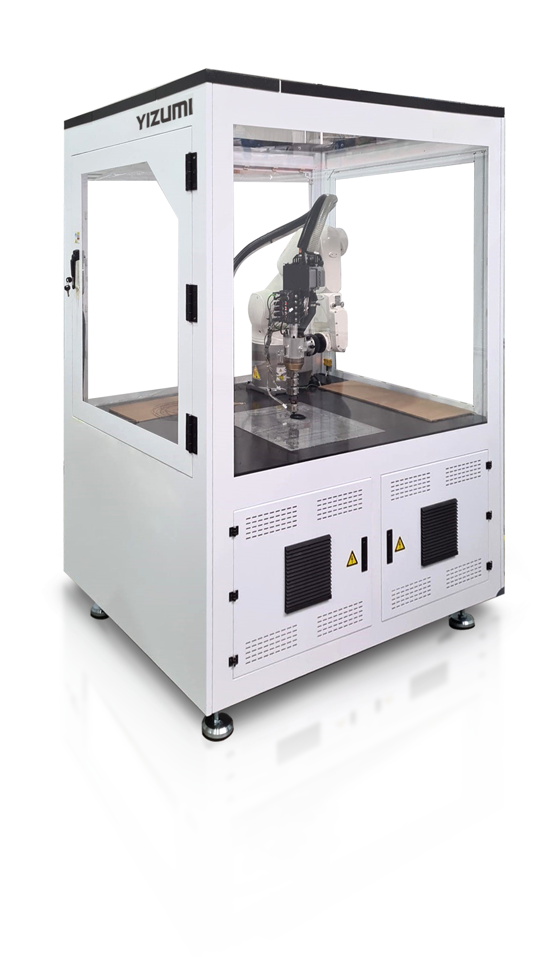 In die Maschine ist ein 6-achsiger Industrieroboterarm integriert, der die geometrischen Beschränkungen herkömmlicher Verfahren überwindet und eine größere Designflexibilität ermöglicht.